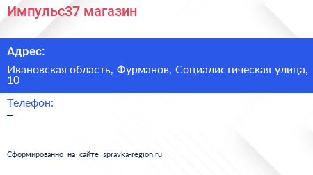 Импульс37, магазин по адресу Ивановская область, Фурманов, Социалистическая улица, 10 в дальнейшем Организация, размещена в следующих категориях: