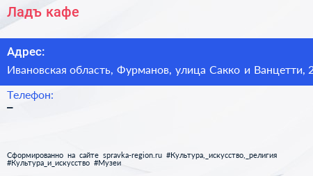 Ладъ, кафе по адресу Ивановская область, Фурманов, улица Сакко и Ванцетти, 2 в дальнейшем Организация, размещена в следующих категориях: