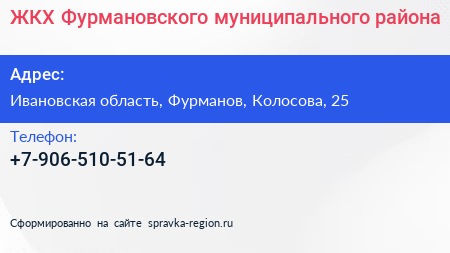 ЖКХ Фурмановского муниципального района по адресу Ивановская область, Фурманов, Колосова, 25 в дальнейшем Организация, размещена в следующих категориях:
