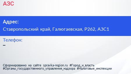 АЗС по адресу Ставропольский край, Галюгаевская, Р262, АЗС1 в дальнейшем Организация, размещена в следующих категориях: