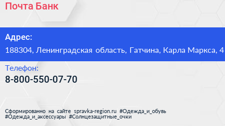 Почта Банк по адресу 188304, Ленинградская область, Гатчина, Карла Маркса, 4 в дальнейшем Организация, размещена в следующих категориях: