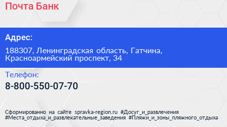 Почта Банк по адресу 188307, Ленинградская область, Гатчина, Красноармейский проспект, 34 в дальнейшем Организация, размещена в следующих категориях: