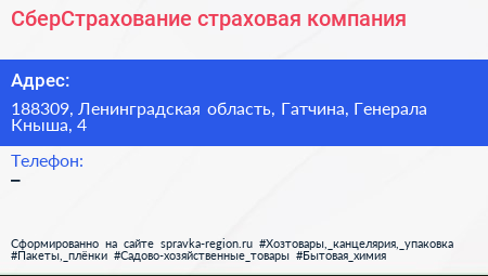 СберСтрахование, страховая компания по адресу 188309, Ленинградская область, Гатчина, Генерала Кныша, 4 в дальнейшем Организация, размещена в следующих категориях:
