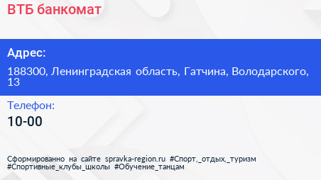 ВТБ, банкомат по адресу 188300, Ленинградская область, Гатчина, Володарского, 13 в дальнейшем Организация, размещена в следующих категориях: