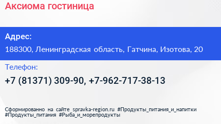 Аксиома, гостиница по адресу 188300, Ленинградская область, Гатчина, Изотова, 20 в дальнейшем Организация, размещена в следующих категориях: