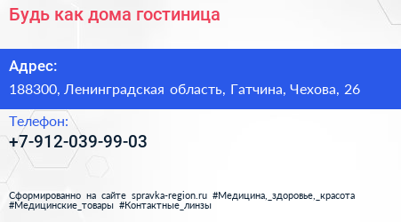 Будь как дома, гостиница по адресу 188300, Ленинградская область, Гатчина, Чехова, 26 в дальнейшем Организация, размещена в следующих категориях:
