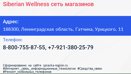 Siberian Wellness, сеть магазинов по адресу 188300, Ленинградская область, Гатчина, Урицкого, 11 в дальнейшем Организация, размещена в следующих категориях: