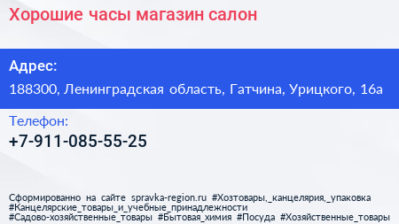 Хорошие часы, магазин-салон по адресу 188300, Ленинградская область, Гатчина, Урицкого, 16а в дальнейшем Организация, размещена в следующих категориях: