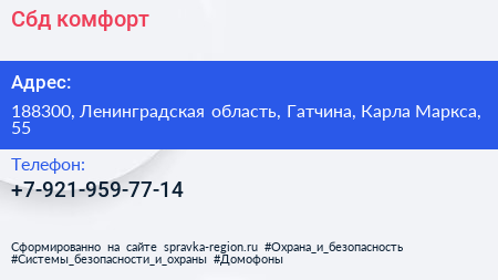 Сбд-комфорт по адресу 188300, Ленинградская область, Гатчина, Карла Маркса, 55 в дальнейшем Организация, размещена в следующих категориях: