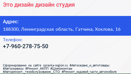 Это дизайн, дизайн-студия по адресу 188300, Ленинградская область, Гатчина, Хохлова, 16 в дальнейшем Организация, размещена в следующих категориях: