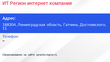 ИТ-Регион, интернет-компания по адресу 188304, Ленинградская область, Гатчина, Достоевского, 11 в дальнейшем Организация, размещена в следующих категориях: