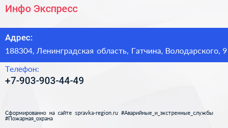 Инфо Экспресс по адресу 188304, Ленинградская область, Гатчина, Володарского, 9 в дальнейшем Организация, размещена в следующих категориях: