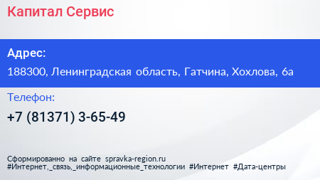 Капитал-Сервис по адресу 188300, Ленинградская область, Гатчина, Хохлова, 6а в дальнейшем Организация, размещена в следующих категориях: