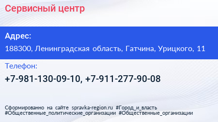 Сервисный центр по адресу 188300, Ленинградская область, Гатчина, Урицкого, 11 в дальнейшем Организация, размещена в следующих категориях: