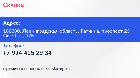 Скупка по адресу 188300, Ленинградская область, Гатчина, проспект 25 Октября, 52Б в дальнейшем Организация, размещена в следующих категориях: