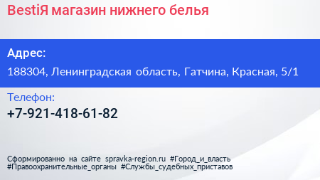 BestiЯ, магазин нижнего белья по адресу 188304, Ленинградская область, Гатчина, Красная, 5/1 в дальнейшем Организация, размещена в следующих категориях:
