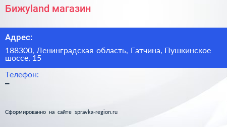 Бижуland, магазин по адресу 188300, Ленинградская область, Гатчина, Пушкинское шоссе, 15 в дальнейшем Организация, размещена в следующих категориях: