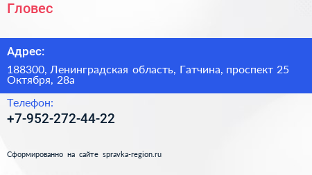 Гловес по адресу 188300, Ленинградская область, Гатчина, проспект 25 Октября, 28а в дальнейшем Организация, размещена в следующих категориях: