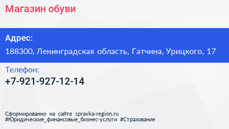 Магазин обуви по адресу 188300, Ленинградская область, Гатчина, Урицкого, 17 в дальнейшем Организация, размещена в следующих категориях: