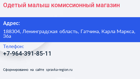 Одетый малыш, комиссионный магазин по адресу 188304, Ленинградская область, Гатчина, Карла Маркса, 36а в дальнейшем Организация, размещена в следующих категориях: