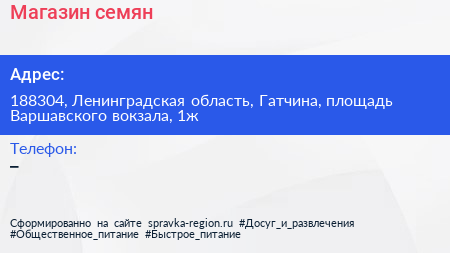 Магазин семян по адресу 188304, Ленинградская область, Гатчина, площадь Варшавского вокзала, 1ж в дальнейшем Организация, размещена в следующих категориях: