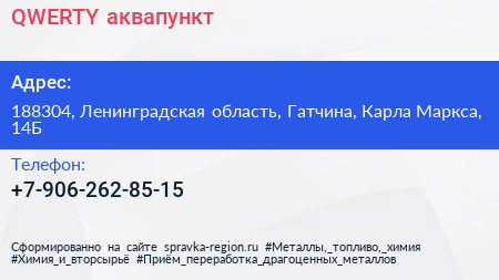 QWERTY, аквапункт по адресу 188304, Ленинградская область, Гатчина, Карла Маркса, 14Б в дальнейшем Организация, размещена в следующих категориях: