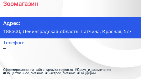 Зоомагазин по адресу 188300, Ленинградская область, Гатчина, Красная, 5/7 в дальнейшем Организация, размещена в следующих категориях: