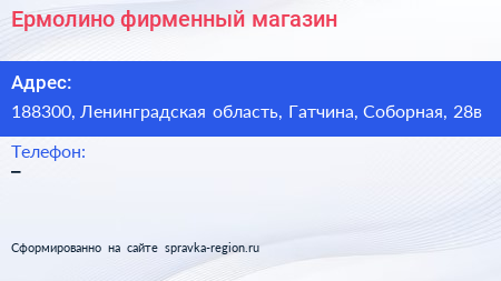 Ермолино, фирменный магазин по адресу 188300, Ленинградская область, Гатчина, Соборная, 28в в дальнейшем Организация, размещена в следующих категориях: