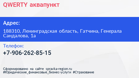 QWERTY, аквапункт по адресу 188310, Ленинградская область, Гатчина, Генерала Сандалова, 1а в дальнейшем Организация, размещена в следующих категориях: