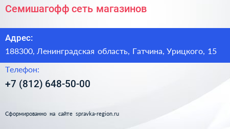 Семишагофф, сеть магазинов по адресу 188300, Ленинградская область, Гатчина, Урицкого, 15 в дальнейшем Организация, размещена в следующих категориях: