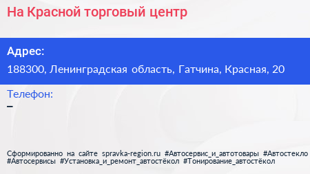 На Красной, торговый центр по адресу 188300, Ленинградская область, Гатчина, Красная, 20 в дальнейшем Организация, размещена в следующих категориях: