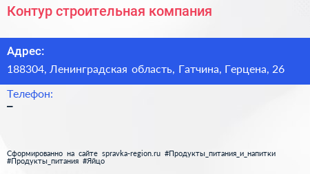 Контур, строительная компания по адресу 188304, Ленинградская область, Гатчина, Герцена, 26 в дальнейшем Организация, размещена в следующих категориях: