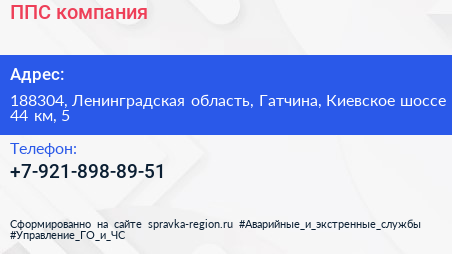 ППС, компания по адресу 188304, Ленинградская область, Гатчина, Киевское шоссе 44 км, 5 в дальнейшем Организация, размещена в следующих категориях: