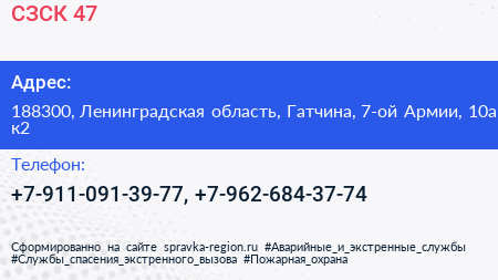 СЗСК 47 по адресу 188300, Ленинградская область, Гатчина, 7-ой Армии, 10а к2 в дальнейшем Организация, размещена в следующих категориях: