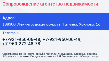 Сопровождение, агентство недвижимости по адресу 188300, Ленинградская область, Гатчина, Хохлова, 16 в дальнейшем Организация, размещена в следующих категориях: