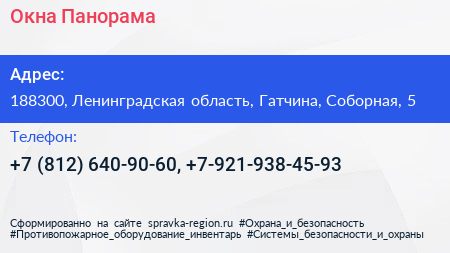 Окна Панорама по адресу 188300, Ленинградская область, Гатчина, Соборная, 5 в дальнейшем Организация, размещена в следующих категориях: