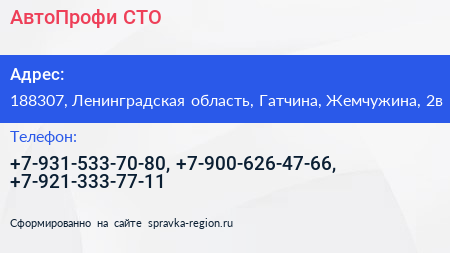 АвтоПрофи, СТО по адресу 188307, Ленинградская область, Гатчина, Жемчужина, 2в в дальнейшем Организация, размещена в следующих категориях: