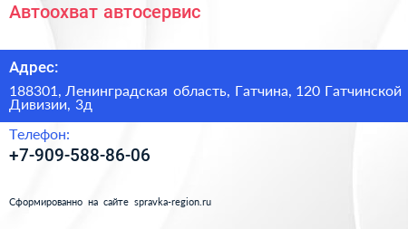 Автоохват, автосервис по адресу 188301, Ленинградская область, Гатчина, 120 Гатчинской Дивизии, 3д в дальнейшем Организация, размещена в следующих категориях: