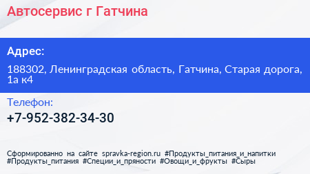 Автосервис, г. Гатчина по адресу 188302, Ленинградская область, Гатчина, Старая дорога, 1а к4 в дальнейшем Организация, размещена в следующих категориях: