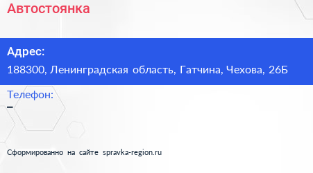 Автостоянка по адресу 188300, Ленинградская область, Гатчина, Чехова, 26Б в дальнейшем Организация, размещена в следующих категориях: