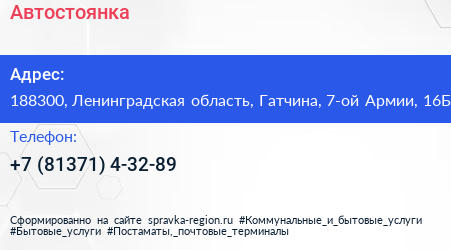 Автостоянка по адресу 188300, Ленинградская область, Гатчина, 7-ой Армии, 16Б в дальнейшем Организация, размещена в следующих категориях: