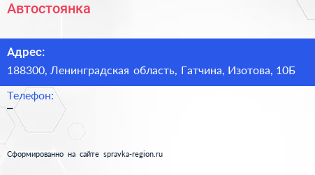 Автостоянка по адресу 188300, Ленинградская область, Гатчина, Изотова, 10Б в дальнейшем Организация, размещена в следующих категориях: