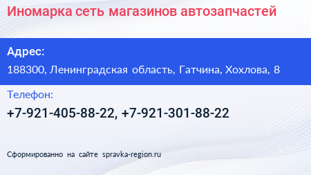 Иномарка, сеть магазинов автозапчастей по адресу 188300, Ленинградская область, Гатчина, Хохлова, 8 в дальнейшем Организация, размещена в следующих категориях: