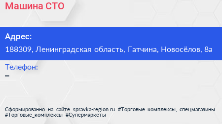 Машина, СТО по адресу 188309, Ленинградская область, Гатчина, Новосёлов, 8а в дальнейшем Организация, размещена в следующих категориях: