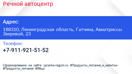 Речной, автоцентр по адресу 188310, Ленинградская область, Гатчина, Авиатриссы Зверевой, 23 в дальнейшем Организация, размещена в следующих категориях: