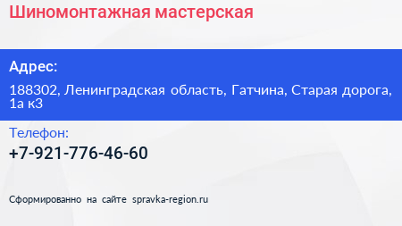 Шиномонтажная мастерcкая по адресу 188302, Ленинградская область, Гатчина, Старая дорога, 1а к3 в дальнейшем Организация, размещена в следующих категориях: