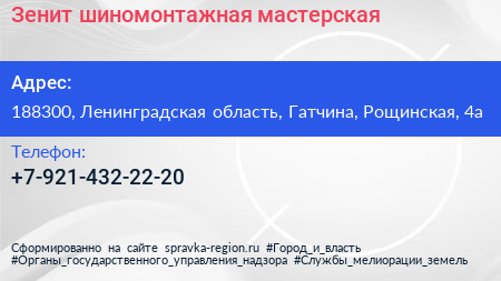 Зенит, шиномонтажная мастерская по адресу 188300, Ленинградская область, Гатчина, Рощинская, 4а в дальнейшем Организация, размещена в следующих категориях: