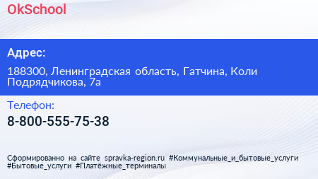 OkSchool по адресу 188300, Ленинградская область, Гатчина, Коли Подрядчикова, 7а в дальнейшем Организация, размещена в следующих категориях: