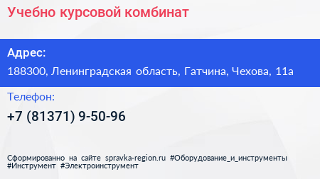 Учебно-курсовой комбинат по адресу 188300, Ленинградская область, Гатчина, Чехова, 11а в дальнейшем Организация, размещена в следующих категориях: