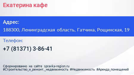 Екатерина, кафе по адресу 188300, Ленинградская область, Гатчина, Рощинская, 19 в дальнейшем Организация, размещена в следующих категориях: